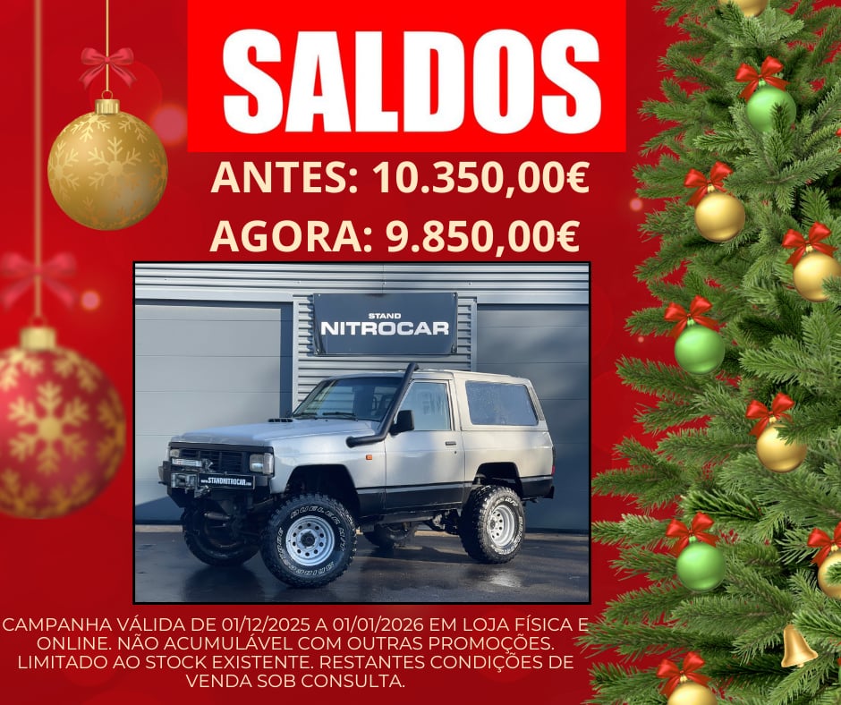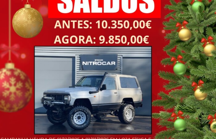 Excelente viatura 4×4 com uma das melhores e mais fiáveis mecânicas da marca. Viatura em bom estado geral, revisão completa feita, embraiagem de competição reforçada, turbo e bomba trabalhados e melhorados, arrefecimento ao sexto cilindro. Viatura equipada com direção assistida, vidros com películas homologadas, direção assistida, luzes de leds, proteções inferiores, auto-rádio, luzes de leds, interior em bom estado com quartelas em chapa de aluminio anti-derrapante, pintura recente, escape desportivo, travões de disco, suspenção desportiva mais alta, amortecedor de direção, brincos mais altos boomerang, snorkel, jantes c/ off set negativo c/ pneus Bridgestone Dueler Mt 33 x 12,5 x 15, manómetro do turbo, para-choques em ferro, guincho e mais extras.